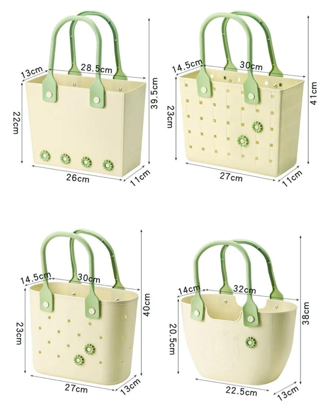 Each bag is accentuated with cute flower embellishments and a clean, handcrafted finish, making it a perfect companion for your daily errands, beach outings, or travel adventures.